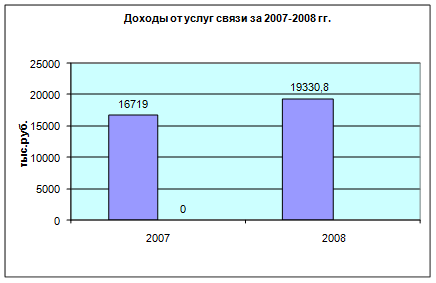 Данные по доходам сведены в таблицу 1.6 и представлены на диаграмме 2 . Анализ доходов от предоставления услуг связи показывает, что за рассматриваемый период с 2007 – 2008 гг. доходы от предоставления услуг связи по Богородскому почтамту увеличились на 15,6%