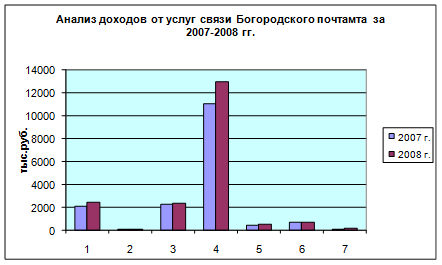 Таблица 1.6 Анализ доходов от услуг связи Богородского почтамта за 2007 – 2008 гг.