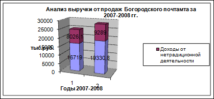 Таблица 1.9 Анализ выручки от продаж Богородского почтамта за 2007 – 2008 гг.