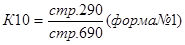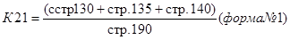 К12 = (стр. 490 - стр. 190) / стр. 290 (форма N 1)