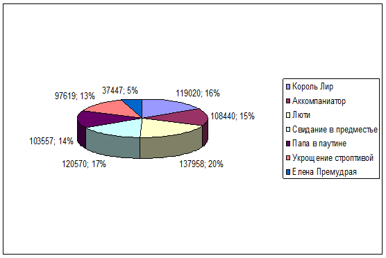 На рис. 2.9 отражена структура материальных затрат театра по спектаклям в 2004 году