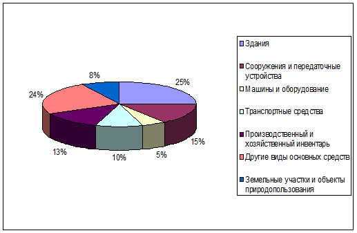 На рис. 2.10 отражена структура основных средств в 2004 году