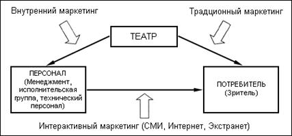 Модель маркетинга услуг в театральной сфере можно представить в виде трех взаимосвязанных звеньев (рис.3.1).
