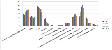 Целесообразным представляется проанализировать изменение структуры налоговых доходов в динамике в период 2002-2007 год.