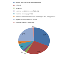 Итак, ключевую роль в формировании налоговых доходов бюджетов субъектов РФ играют три налога – налог на прибыль организаций (32 %), налог на доходы физических лиц (26 %) и единый социальный налог (24 % - поступает в территориальные внебюджетные фонды). Доля остальных налогов пока что не высока.