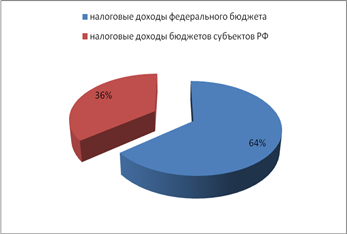 На рисунке 12 представлено соотношение между налоговыми доходами федерального бюджета и бюджетов субъектов РФ.
