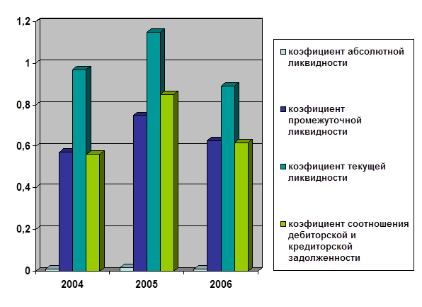 1. Ликвидность предприятия очень низкая. Предприятие не может отвечать по своим обязательствам. Платежеспособность предприятия по сравнению с 2004 годом увеличивается. Коэффициент ликвидности находится ниже рекомендуемых значений. Очень низкое значение коэффициента абсолютной ликвидности говорит о том, что предприятие не имеет возможности рассчитаться со своими поставщиками материальных ресурсов и соответственно является для них непривлекательным.