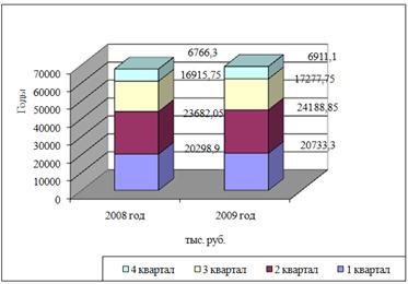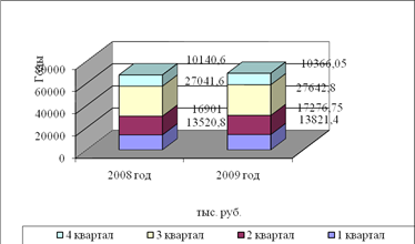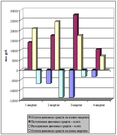 Распределение денежных потоков по кварталам в 2009 г. (тыс. руб.)