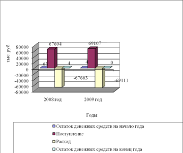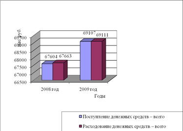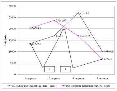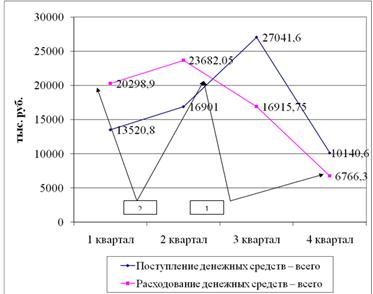 Рис. 3. Динамика изменения поступления и расходования денежных средств, (тыс. руб.).