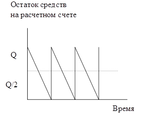 Модель Баумола. Предполагается, что предприятие начинает работать, имея максимальный и целесообразный для него уровень денежных средств, и затем постоянно расходует их в течение некоторого периода времени [9].