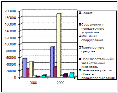 В структуре основных средств наибольшую долю занимают производственные фонды, причем их доля в структуре основных средств увеличилась в 2009 году с 95,98% до 96,34%, соответственно доля непроизводственных фондов снизилась с 4,11% до 3,66%.