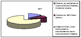 Основную долю в структуре нематериальных активов занимают товарные знаки и наименования места происхождения товара (более 70%), хотя за отчетный период абсолютная их величина и относительная доля в общей сумме несколько уменьшилась. Это свидетельствует о снижении деловой активности предприятия, так как в отчетном году не было инвестиций в данный вид активов. Остальную долю нематериальных активов предприятия составляют интеллектуальные продукты (патенты, авторские права, программы для ЭВМ и др.).