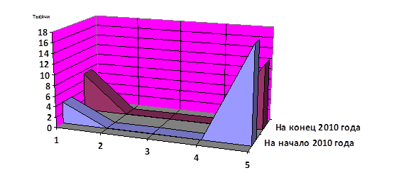 Данная диаграмма показывает изменение показателей входящих в состав кредиторской задолженности на начало и конец 2010 года.