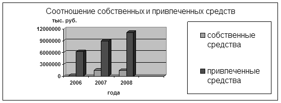 На рисунке 2.2. представлена динамика изменения соотношения привлеченных средств физических и юридических лиц; как видим, доля средств юридических лиц практически не росла на протяжении 2006-2008 годов.