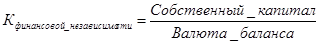 Коэффициент финансовой независимости показывает, какую долю занимает собственный капитал во всем капитале предприятия.