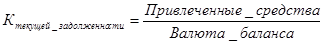 2. Коэффициент текущей задолженности (коэффициент концентрации привлеченных средств). Он является дополнением к коэффициенту финансовой независимости и в сумме они дают 1 (или 100%).