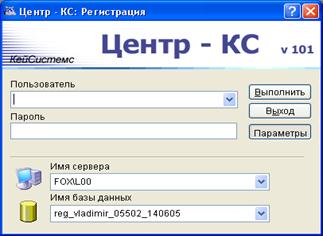 После запуска программы «Центр-КС» открывается окно регистрации в системе (Рисунок 5.1).