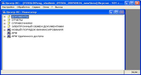 При входе в систему открывается основная экранная форма системы (Рисунок 5.2), содержащая главное меню системы и навигатор объектов системы.