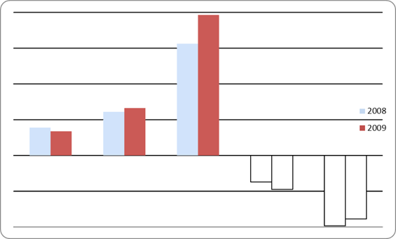 Рисунок 2.2 -Динамика показателей финансовой устойчивости ОАО «ТАГМЕТ» в 2008-2009 гг
