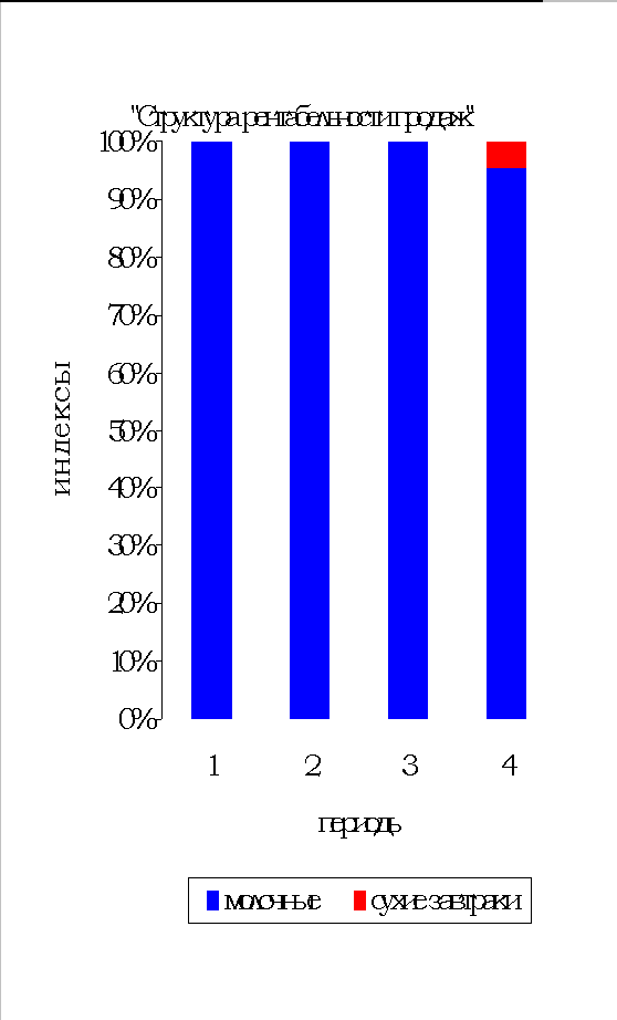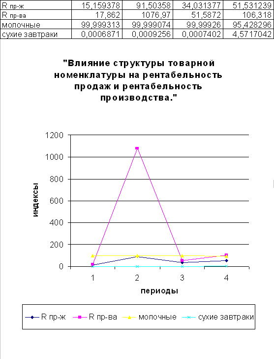 Это можно объяснить тем, что товарная группа «Сухие завтраки» реализовывались только в четвертом периоде и принесли фирме прибыль в сумме 14 тыс. 560 руб. (см. таблицу №1).