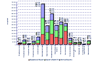 Рис. 2.12 - Поступления по основным видам налогов и сборов в бюджетную систему Российской Федерации по Сибирскому федеральному округу за 2004 г. (бюджеты субъектов РФ) [40]