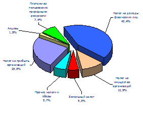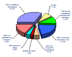 Рис. 2.10 - Поступления по основным видам налогов и сборов в бюджетную систему Российской Федерации по Сибирскому федеральному округу за 2004 г. (консолидированный бюджет) [40]
