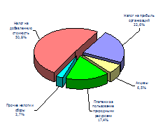 Рис. 2.11 - Поступления по основным видам налогов и сборов в бюджетную систему Российской Федерации по Сибирскому федеральному округу за 2004 г. (федеральный бюджет) [40]