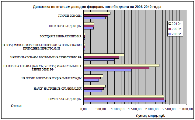 Диагр.1.1. Динамика по статьям доходов федерального бюджета на 2008-2010годы