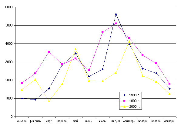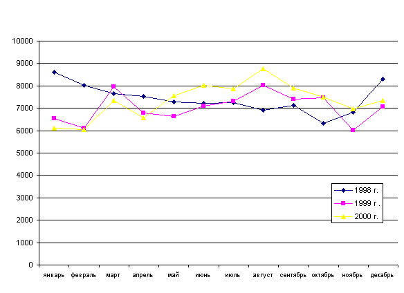 Рис. 9 Динамика оптовой реализации в 1998-2000 г.г.