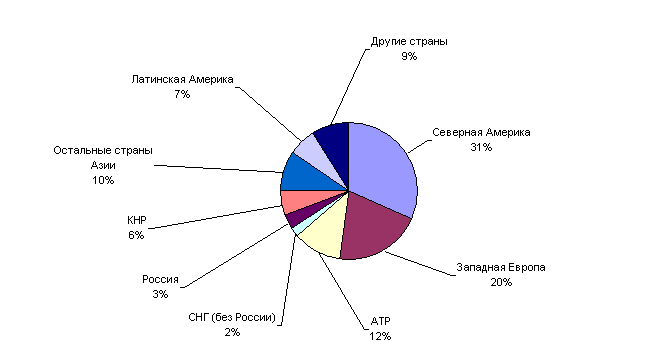3. Львиная доля мирового потребления сосредоточена в странах Северной Америки и Западной Европы (см. рис 1).