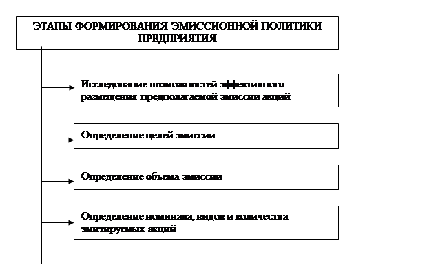 Рисунок 4 – Основные этапы формирования эмиссионной политики предприятия при увеличении собственного капитала.
