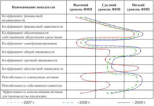 Оценка ФПП проводится по данным финансовой отчетности за 2007-2009 года. Результаты расчета значений финансовых показателей ОАО "Нефтекамскнефтехим" представлены в таблице 7.