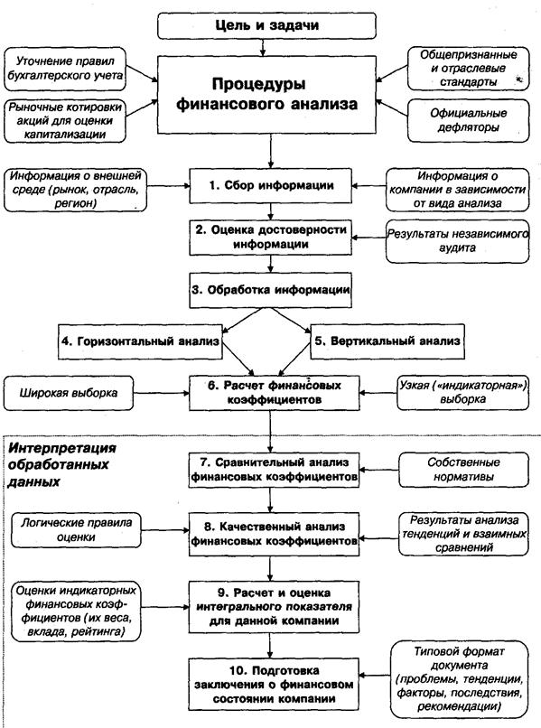 Финансовый анализ российской компании в связи с плановым переходом на международные стандарты бухгалтерского учета (IAS) по используемым формам и методам принципиально не отличается от аналогичных процедур традиционного (западного) подхода. Поэтому в общем виде для российских предприятий может применяться отработанная и хорошо зарекомендовавшая себя схема классического анализа, состоящая из ряда этапов[18].