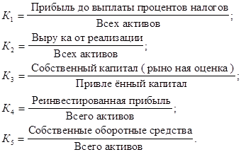 Индекс Альтмана представляет собой функцию от некоторых показателей, характеризующих экономический потенциал предприятия и результаты его работы за истёкший период. В общем виде индекс кредитоспособности ( Z ) имеет вид: