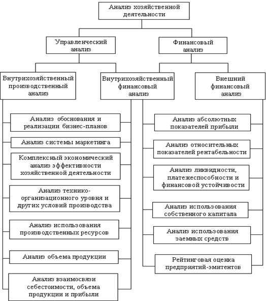 Подход к структурированию аналитических процедур на уровне предприятия в последние годы пропагандируется московской школой аналитиков под руководством проф. А.Д. Шеремета. Этот подход формально базируется на получившей достаточное распространение англо-американской методологии бухгалтерского учета, подразумевающей его деление на управленческий и финансовый учеты. Предлагаемая московскими учеными схема анализа хозяйственной деятельности предприятия представлена на рис. 1.