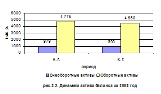 Опережающий темп роста оборотных активов создает предпосылки для расширения текущей производительной деятельности. Таким образом, структура баланса сложилась в пользу оборотных средств, они на конец года составляют 83,64%. Для наглядности динамику актива баланса можно представить в виде диаграммы (рис.2.2)