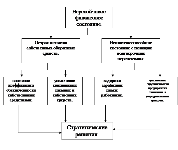Рисунок. 3. Схематическая структура диаграммы «Дерево проблем». 3.3. Разработка вариантов управленческих решений по укреплению финансового состояния.