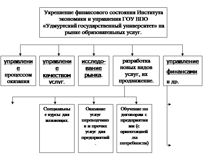 Рисунок 4 – Дерево целей по разработке мероприятий по укреплению финансового состояния Института экономики и управления ГОУ ВПО «Удмуртский государственный университет» на рынке образовательных услуг