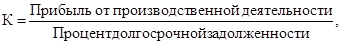 Если предприятие имеет кредит, то необходимо рассчитать коэффициент покрытия прибылью расходов на выплату процентов: