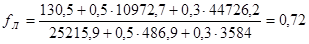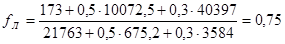Для комплексной оценки ликвидности баланса рассчитывается общий показатель ликвидности fл: