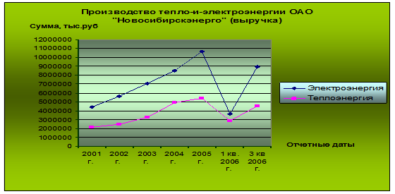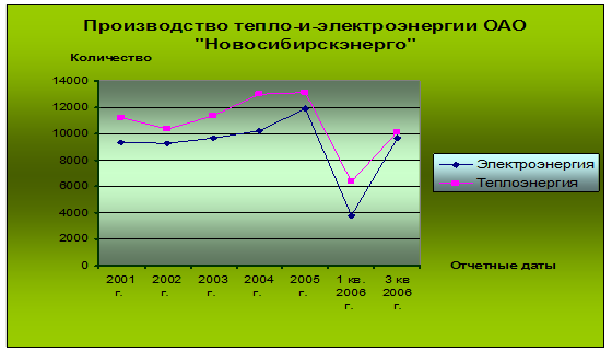 Рис.8. Производство тепло-и-электроэнергии ОАО «Новосибирскэнерго» в период 2001-2006 годов