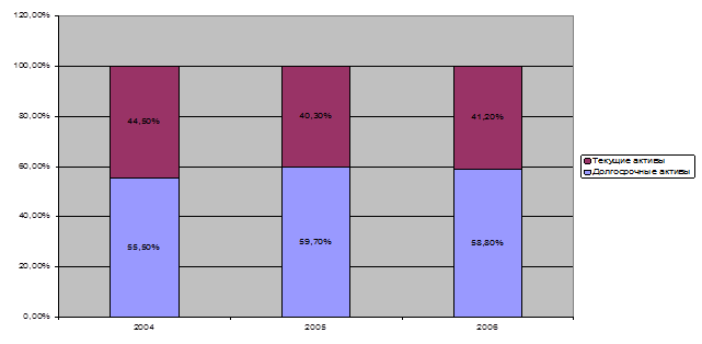 Рис. 3. Изменения в структуре активов ООО «Спецтранснефтепродукт» в 2004 – 2006 гг.