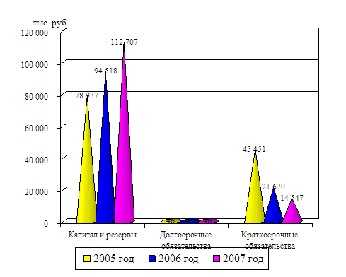 На рисунке 2.2 представлена графически динамика пассива баланса ОАО «НМУ-3» за 2005 – 2007 гг.