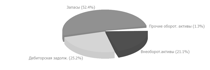 На рисунке 2.2 представлена диаграмма структуры активов организации в разрезе основных групп.