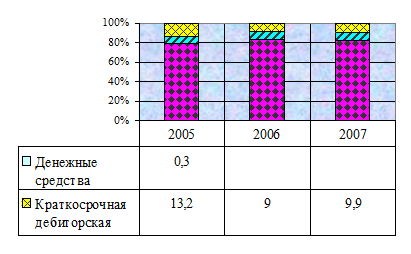 Графически структура актива баланса ООО «Слотекс» за 2005 – 2007 гг. представлена на рис. 2.1.
