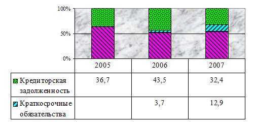 Графически структура пассива баланса ООО «Слотекс» за 2005 - 2007 гг. представлена на рис. 2.2.