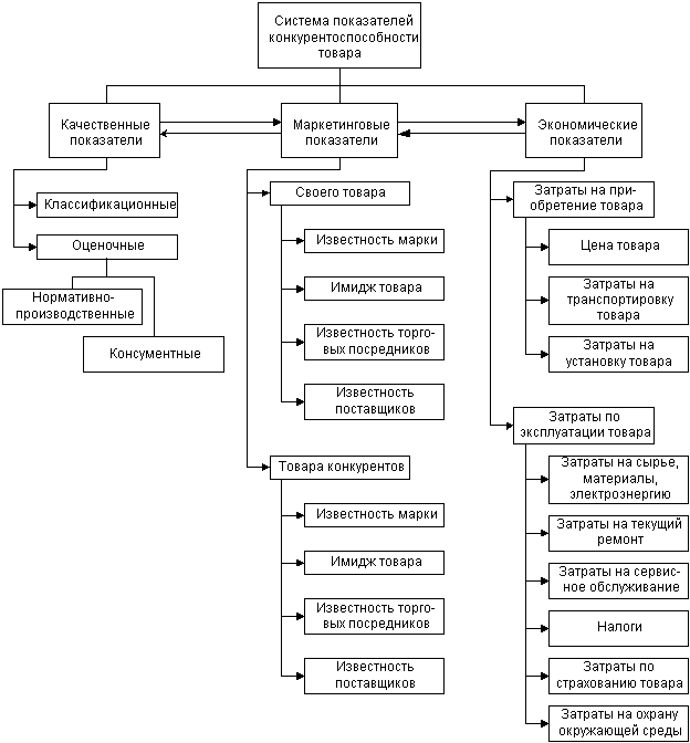 Совокупность качественных и стоимостных характеристик товара, способствующих созданию превосходства данного товара перед товарами конкурентами в удовлетворении конкретной потребности покупателя, определяет конкурентоспособность товара [Багиев, с.249].