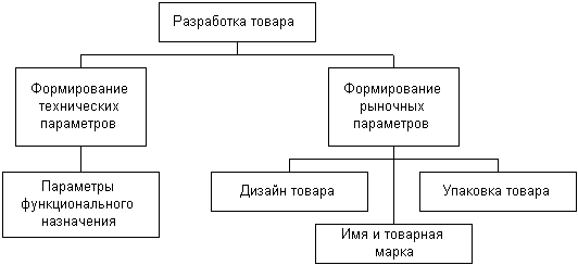 Формирование рыночных параметров осуществляется благодаря разработке дизайна товара, его формы, цвета, массы, упаковки, имени и марки.
