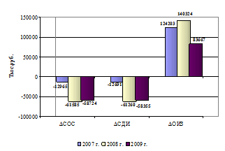 Рисунок 10 - Динамика абсолютных показателей финансовой устойчивости ОАО «ВК и ЭХ» за период 2007 – 2009 гг.