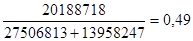 Коэффициент автономии, или финансовой независимости, определяется отношением стоимости капитала и резервов организации, очищенных от убытков, к сумме средств организации в виде внеоборотных и оборотных активов. Данный показатель определяет долю активов организации, которые покрываются за счет собственного капитала (обеспечиваются собственными источниками формирования). Оставшаяся доля активов покрывается за счет заемных средств. Следовательно, наша организация на половину покрывает свои активы собственным капиталом.